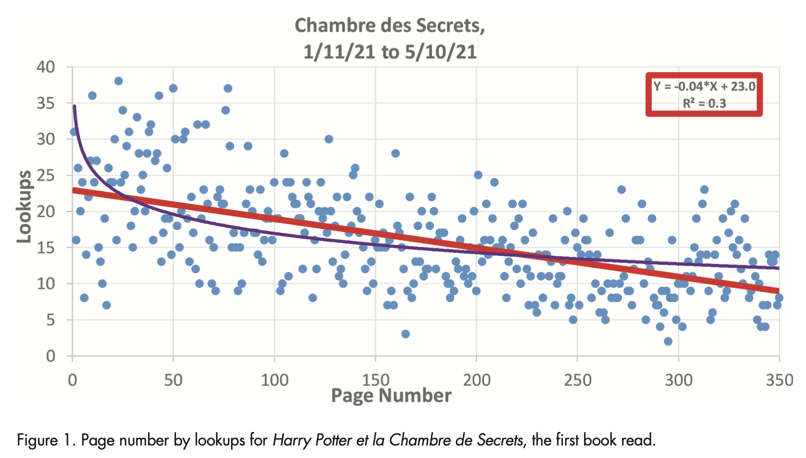 \[ \text{Lookups} = 23.0 - 0.04 \times \text{Page Number} \]