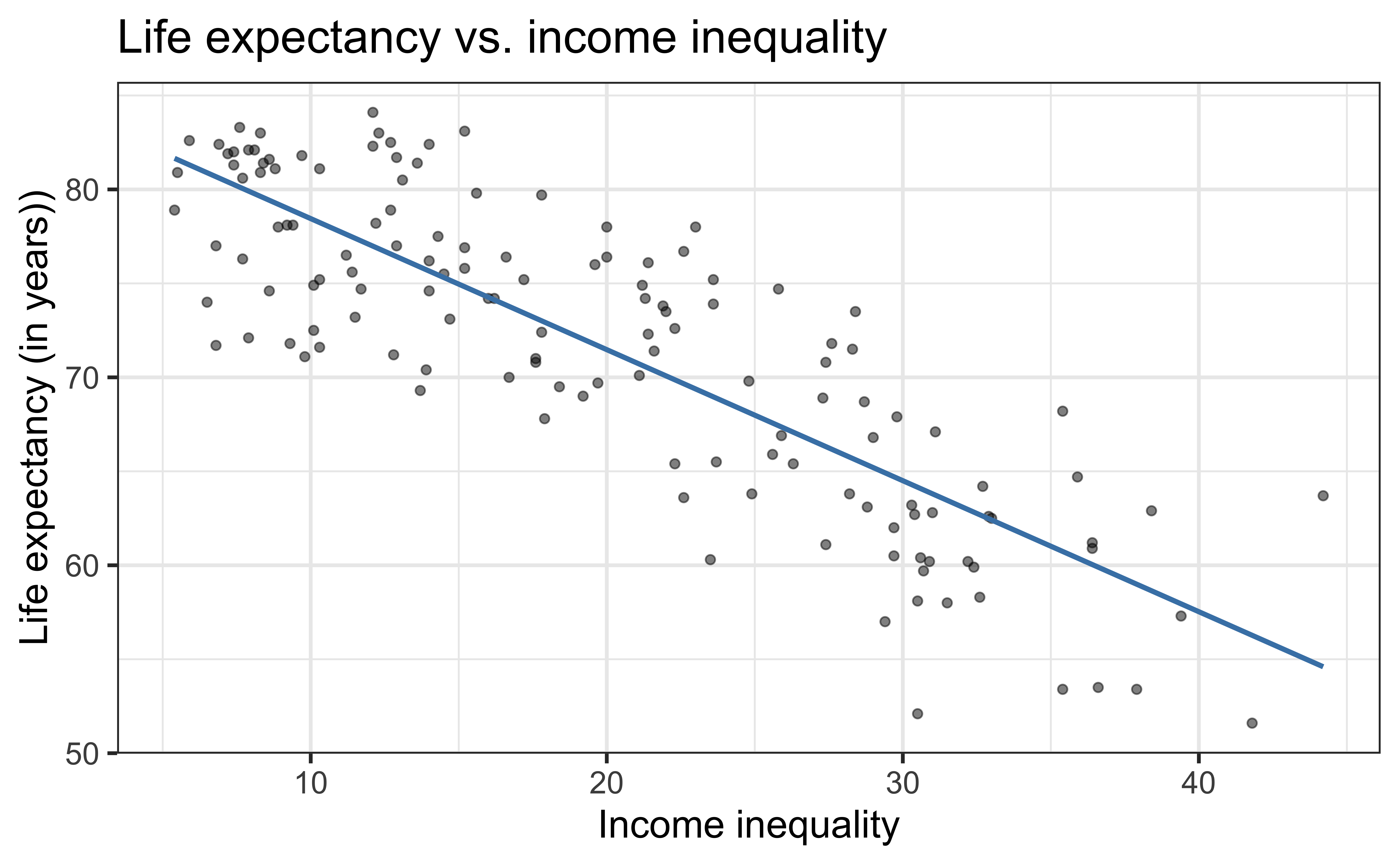 \[\widehat{\text{life_exp}} = \hat{\beta}_0 + \hat{\beta}_1 ~\text{income_inequality}\]