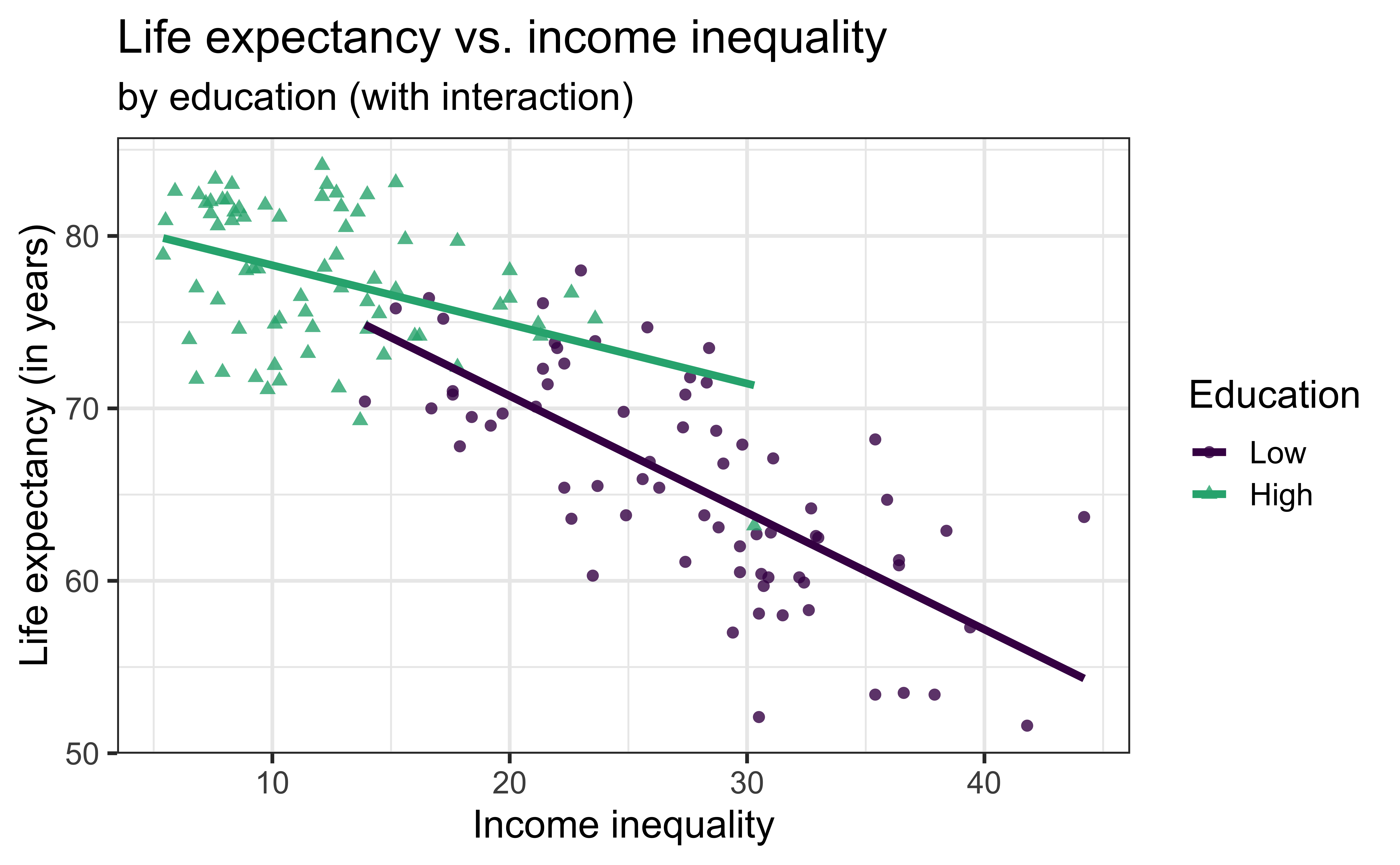 life_exp vs. income_inequality + education (with interaction)