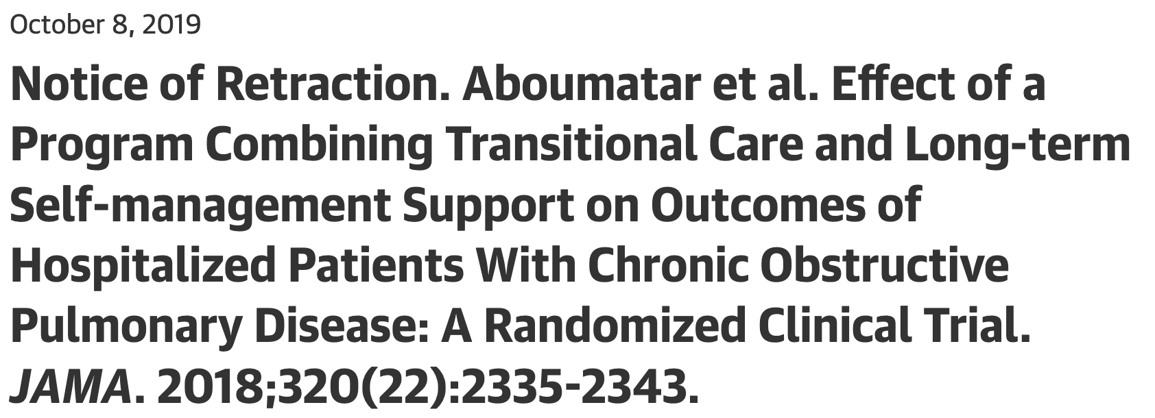 • Originally reported “the intervention, compared with usual care, resulted in a fewer number of mean COPD-related hospitalizations and emergency department visits at 6 months per participant.”