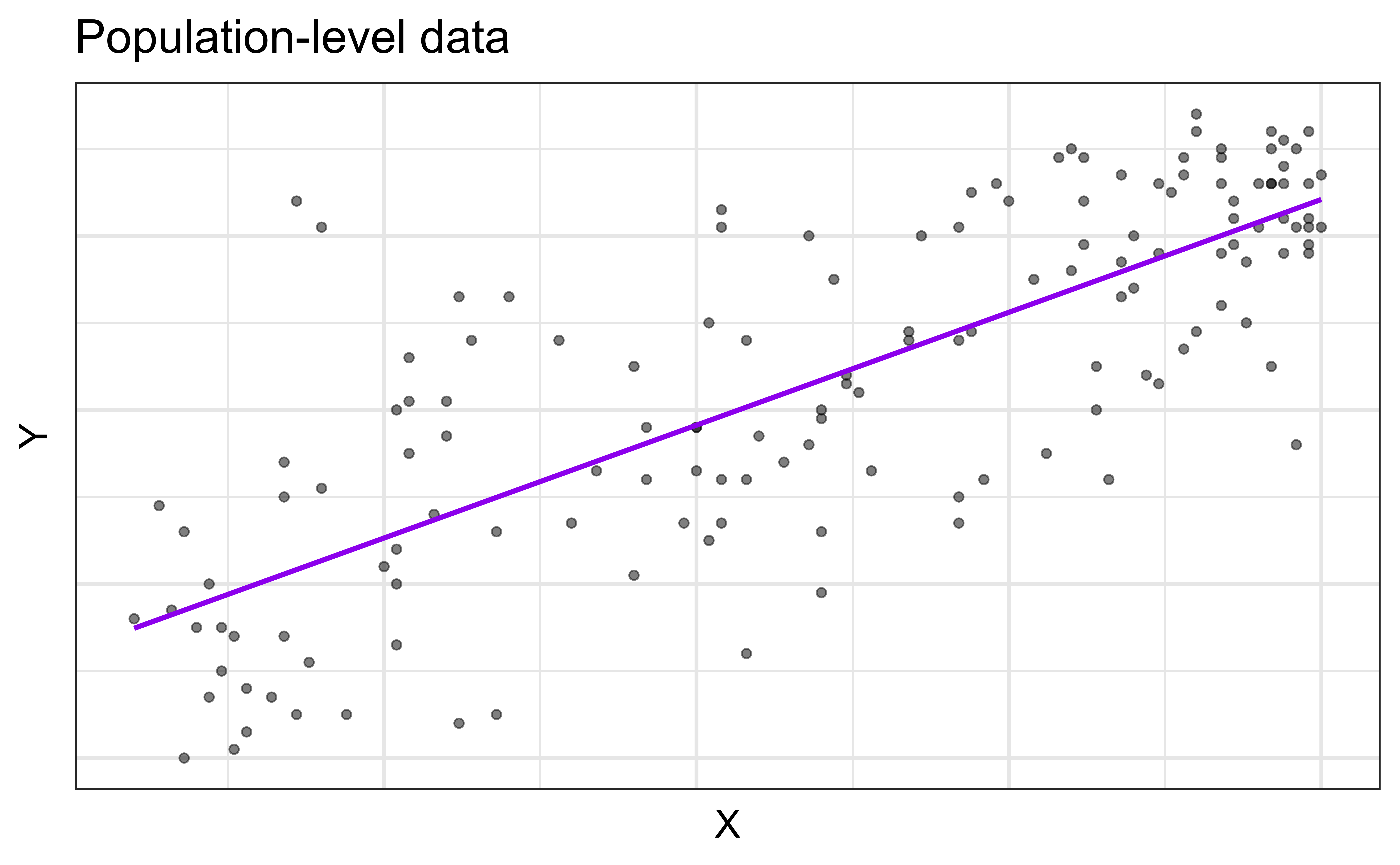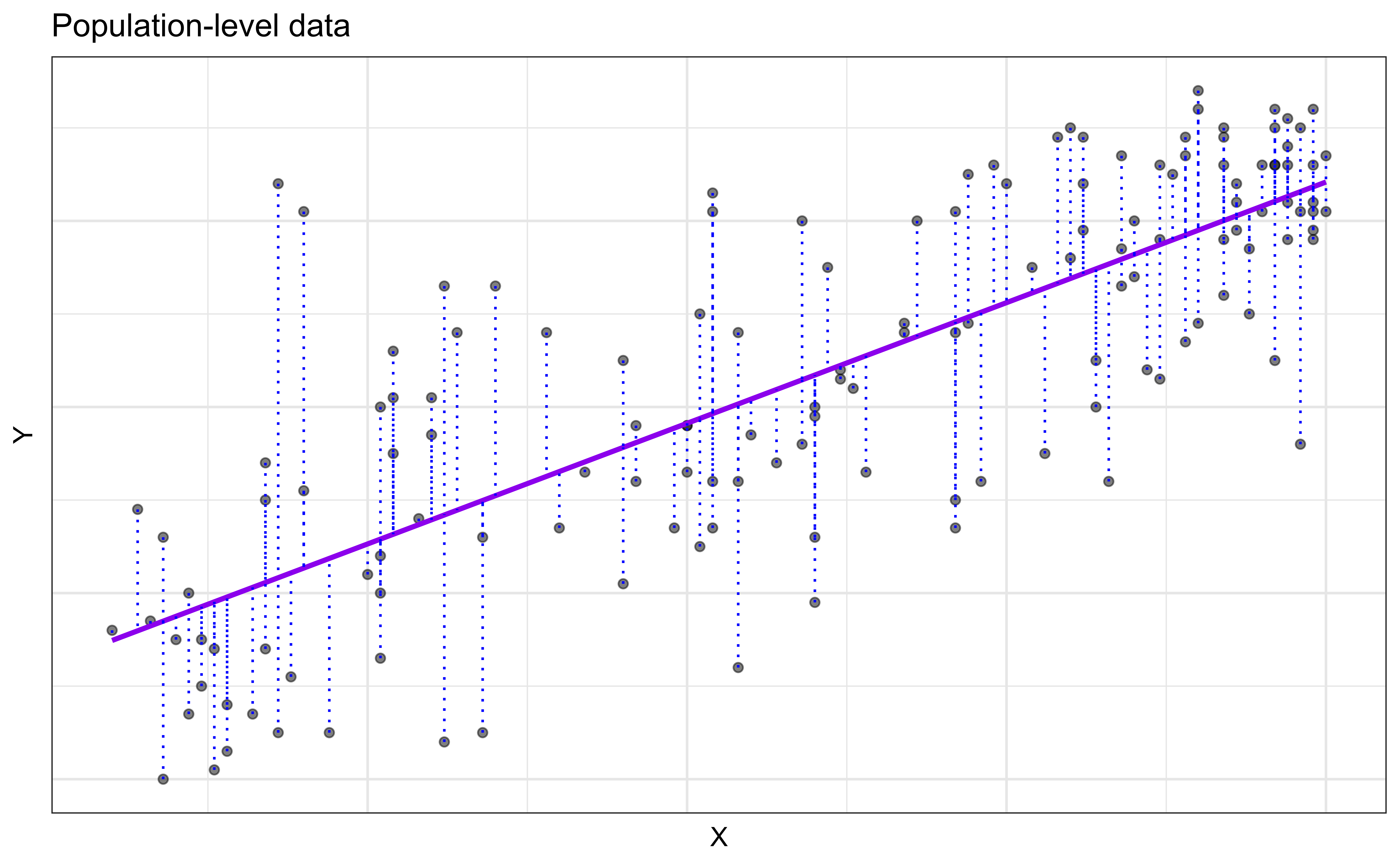 • \(\beta_1\): True slope of the relationship between \(X\) and \(Y\)