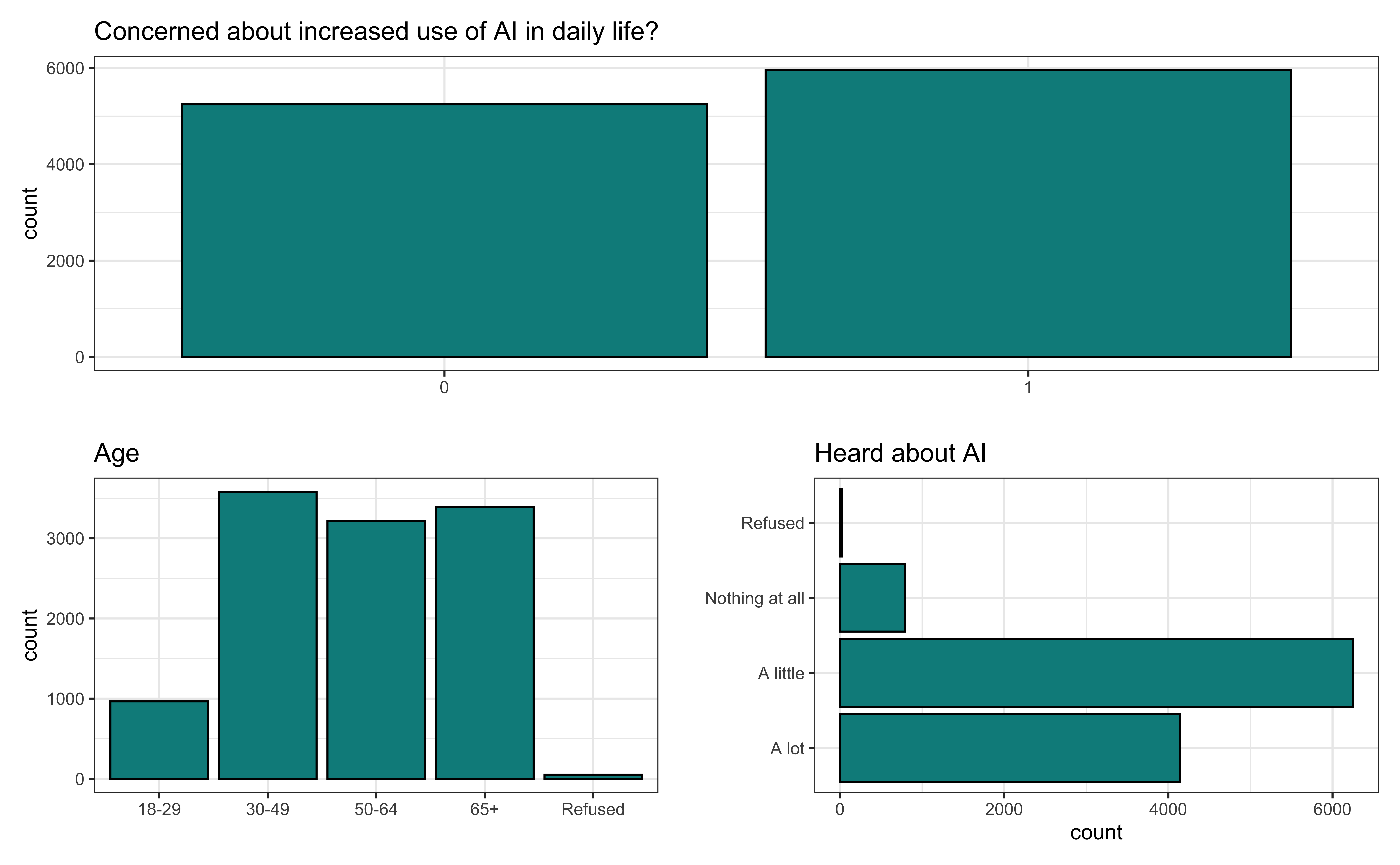 ai_heard = factor(ai_heard, levels = c("A lot", "A little", "Nothing at all", "Refused"))
